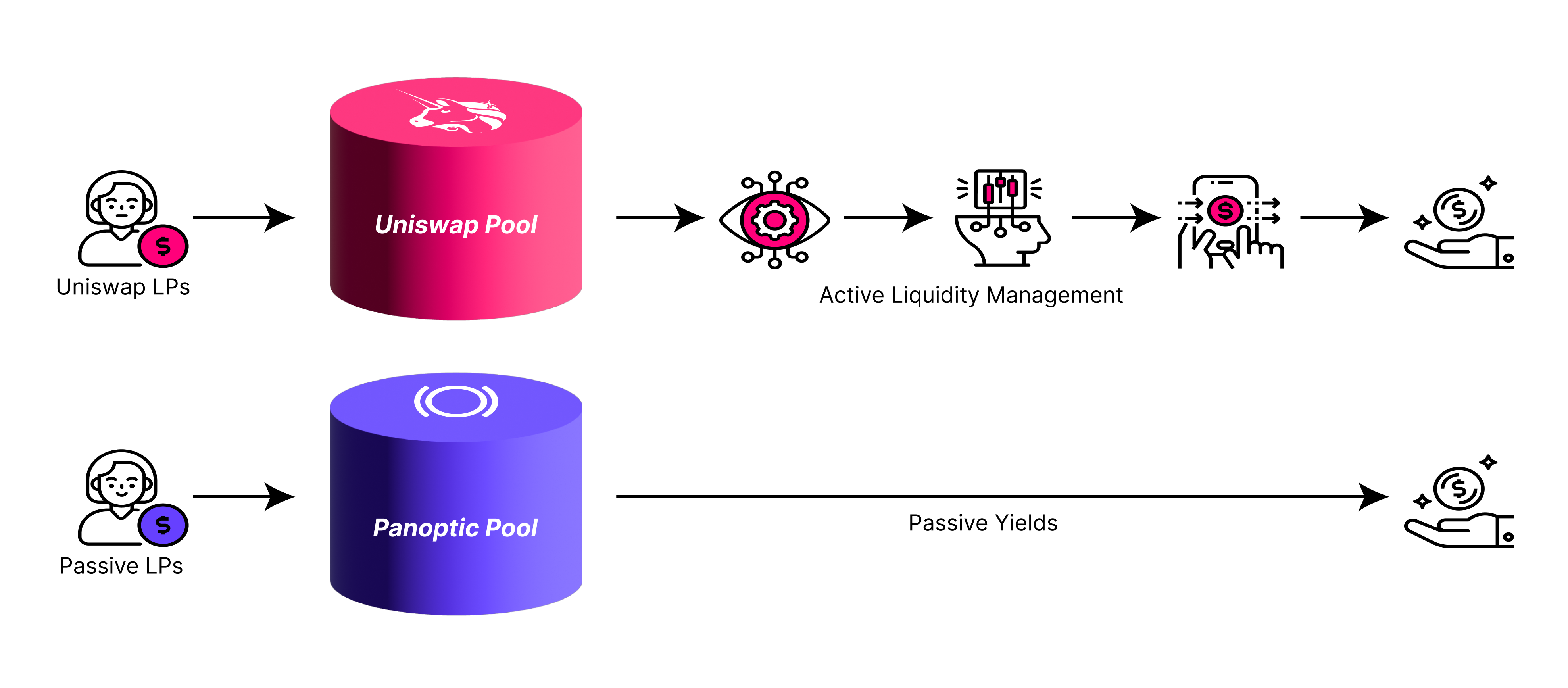 While a plethora of yield opportunities exist in crypto, Panoptic is bringing passive yield to Uniswap. Panoptic offers a unique value proposition for LPs: lend your tokens to active LPs to earn passive rewards.