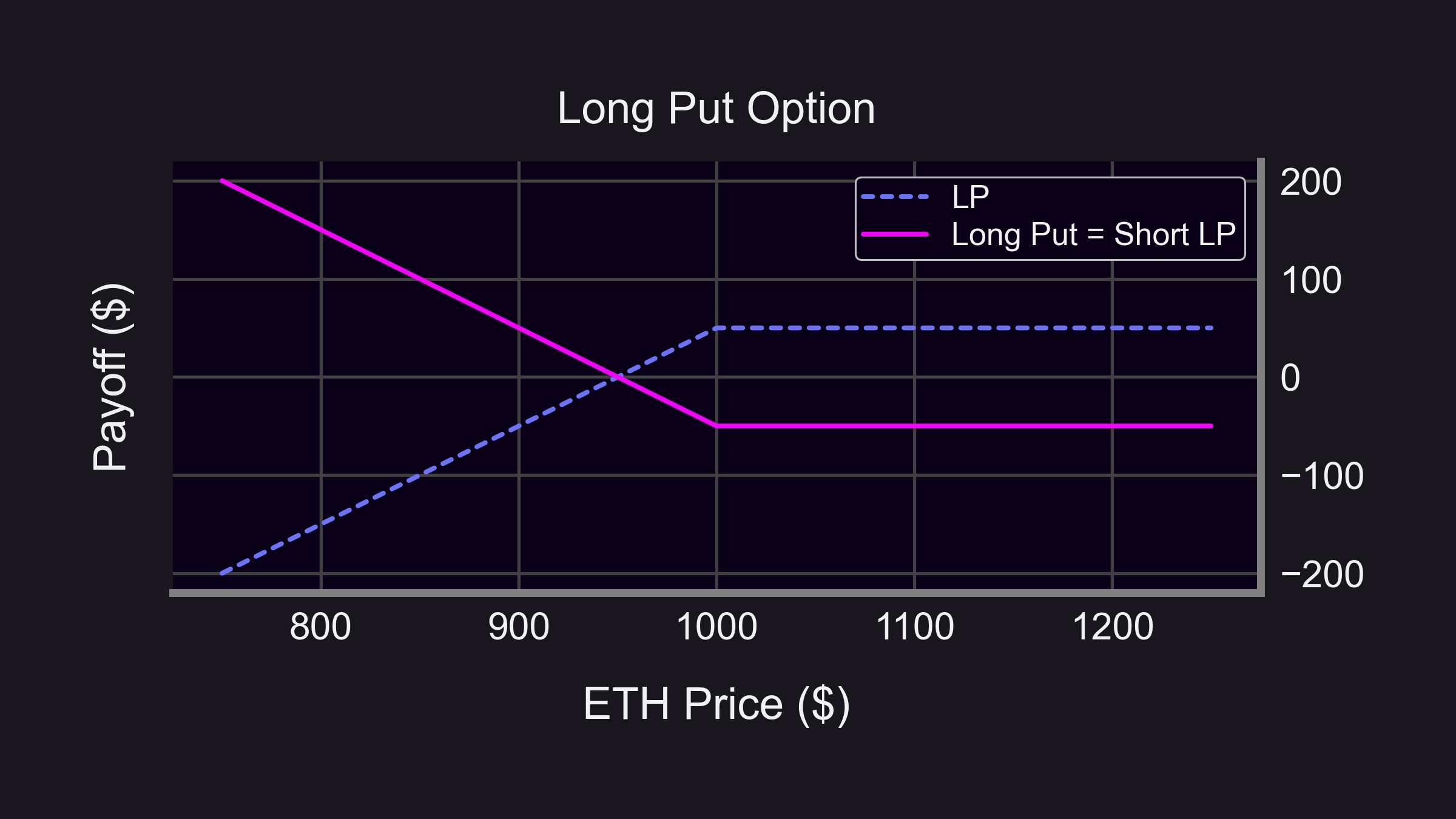 Panoptic discovered that shorting an LP token is essentially the same as buying a put option. A long put option has downside protection and can help protect against downward movements that contribute to IL. By shorting LP tokens, users can benefit off price decreases and lock in profits at any time, turning impermanent loss into permanent gains.